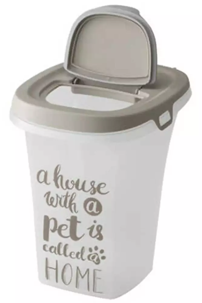 Mama saklama kabı, kedi ve köpeklerinizin kuru mamasını hava almadan güvenle muhafaza edebileceğiniz plastik malzemeden yapılmıştır.
