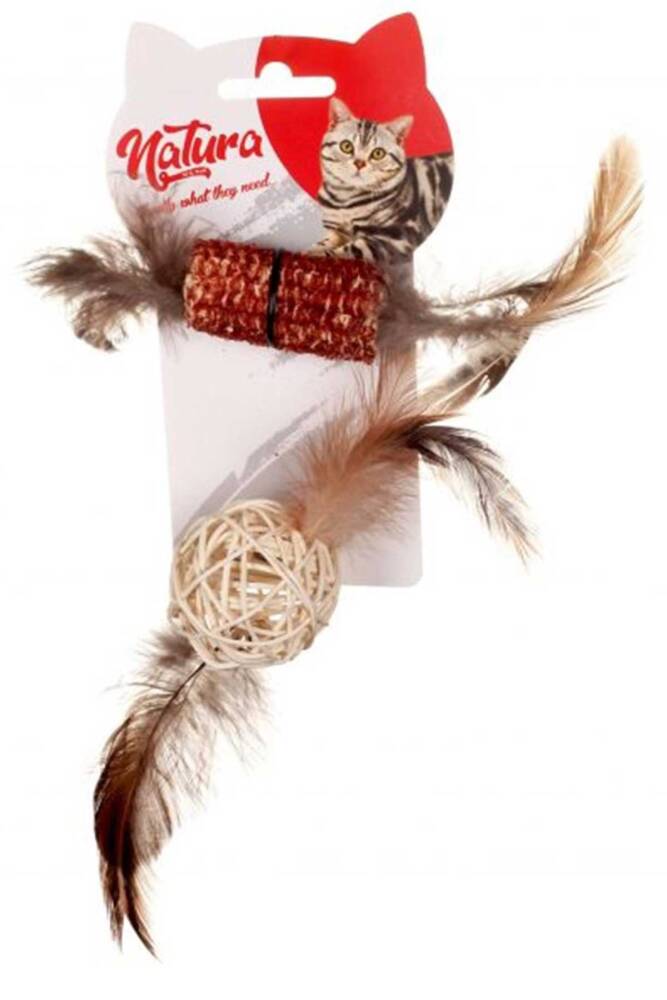 Natura Tüylü Diş Kaşıma ve Bambu Top Kedi Oyuncak