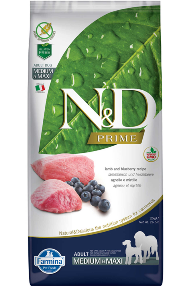 ND Prime Tahılsız Kuzu Eti ve Yaban Mersinli Orta ve Büyük Irk Yetişkin Köpek Maması 12kg