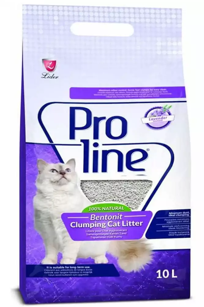 Proline bentonit kedi kumu lavanta kokulu; Tamamen doğal hammadeler kullanılarak üretilmiştir. Standart tanecik boyutuna sahiptir. Topaklaşma özelliği sayesinde kolay temizlenmektedir. Toz miktarı minimum düzeye indirgenmiştir. Kedi kumu; Lavanta kokusu sayesinde istenmeyen kokuların giderilmesine ve ortama hoş bir koku yayılmasına yardımcı olmaktadır.