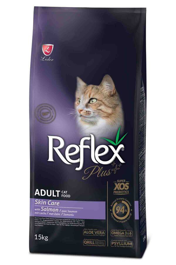 Reflex plus skin care somonlu yetişkin kedi maması; Yetişkin kedilerin tüm besin ihtiyaçlarını karşılayacak şekilde formüle edilmiştir. Kas, kemik, deri ve tüy yapısı için faydalı içerikler bulunmaktadır. Kedi maması; İçeriğinde yer alan vitamin ve mineraller bağışıklık sisteminin güçlenmesine destek vermektedir.